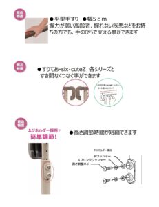 短い手すりと長い手すりの組合せで住環境や使用状況に合わせた