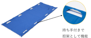 避難所生活が長期化した場合でも床に硬さや冷感抑制の負担を軽減し、快適に過ごすことができ、いざという時の担架として利用することができます。(担架付のみ)