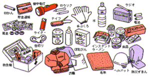 印かん、現金、救急箱、貯金通帳、懐中電灯、