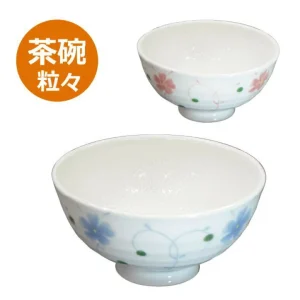 ①の茶碗は、欠けにくく汚れも落ちやすいように粒々加工になっています。