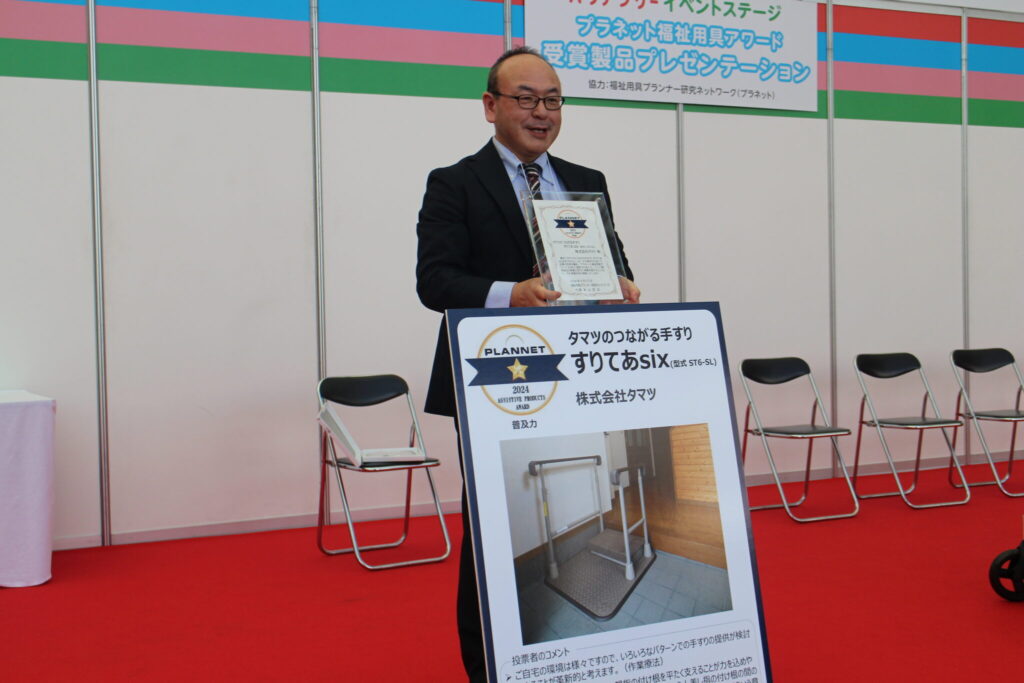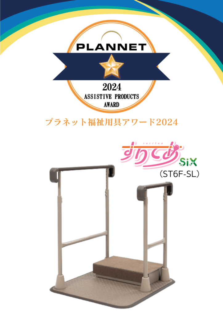プラネット主催の「プラネット福祉用具アワード2024 」にて、 弊社のすりてあsix (ST6F-SL)が一つ星を受賞しました。 タマツのつながる手すり「すりてあ」は置き型手すりでありながら、連結し歩行支援用手すりとなる画期的な手すりです。今回は開発、流通、販売店ら多くの皆様の力により受賞させていただきました。これを励みにして社員一同頑張って行きますので今後とも宜しくお願い致します ●カタログをご覧になりたい方はこちら ●商品のお問い合わせはこちら