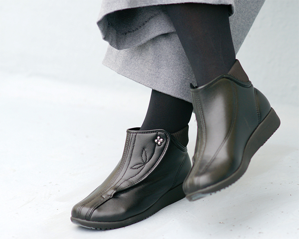 このシューズは、デザイン性だけでなく、足元の健康と安全に配慮した機能性が高く評価されています。軽さ、履き心地、そして使いやすさを兼ね備え、特に日々の外出や室内外での使用に最適です。秋冬はもちろん、初秋や初春にも対応するデザインで、長く使える万能なショートブーツです。