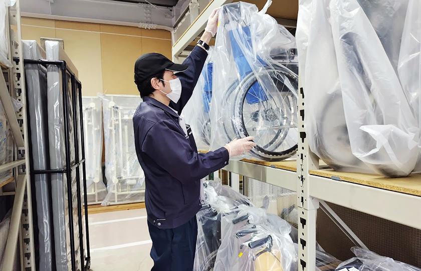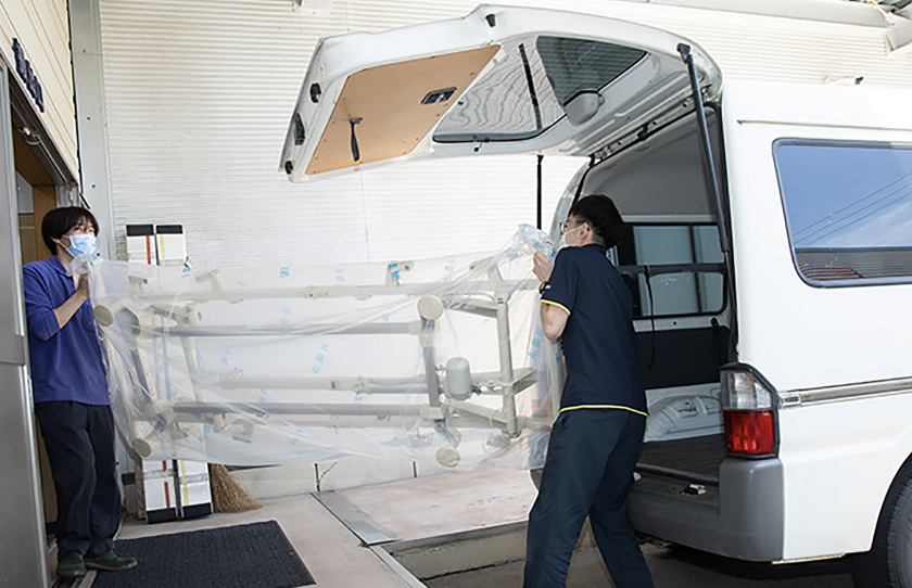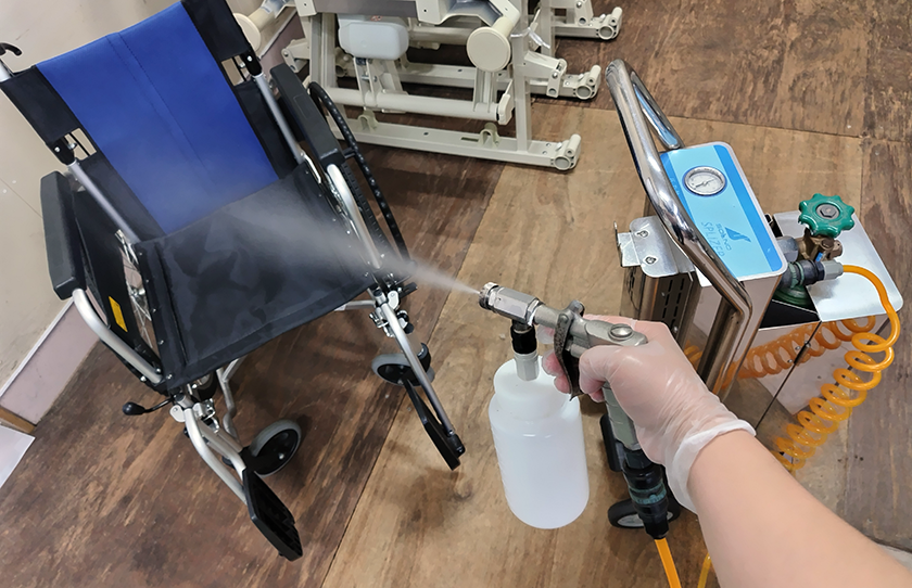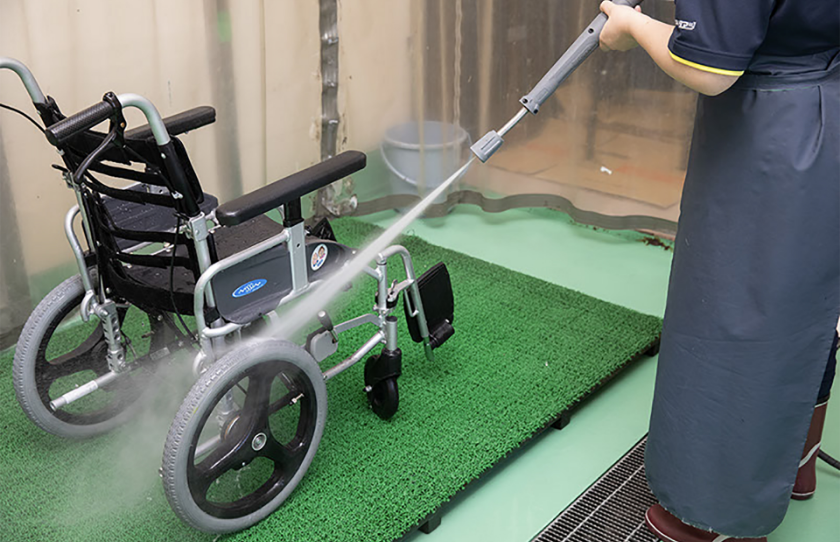 「事故のない安全な用具を提供したい」「きれいな用具で快適に過ごしてほしい」その想いから、消毒・メンテナンスサービスを充実させました。ご使用いただいた福祉用具の日々の使用による汚れやニオイ、劣化、動作の不具合など入念に確認した後、消毒メンテナンスを行い徹底した品質・衛生管理を目指しています。タマツは社団法人シルバーサービス振興会が設けた「福祉用具消毒工程管理認定マーク」を取得した庄内初の企業です。安心してご利用いただくために、福祉用具の安全性を維持するお手伝いをさせていただいております。
